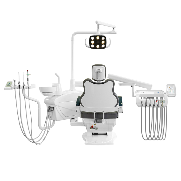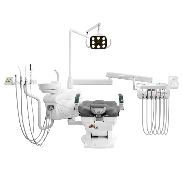 • Upgraded functions: added dental light control, reset of the treatment position, spitting position and first aid, freeing the hands of the doctor and focusing on treatment
